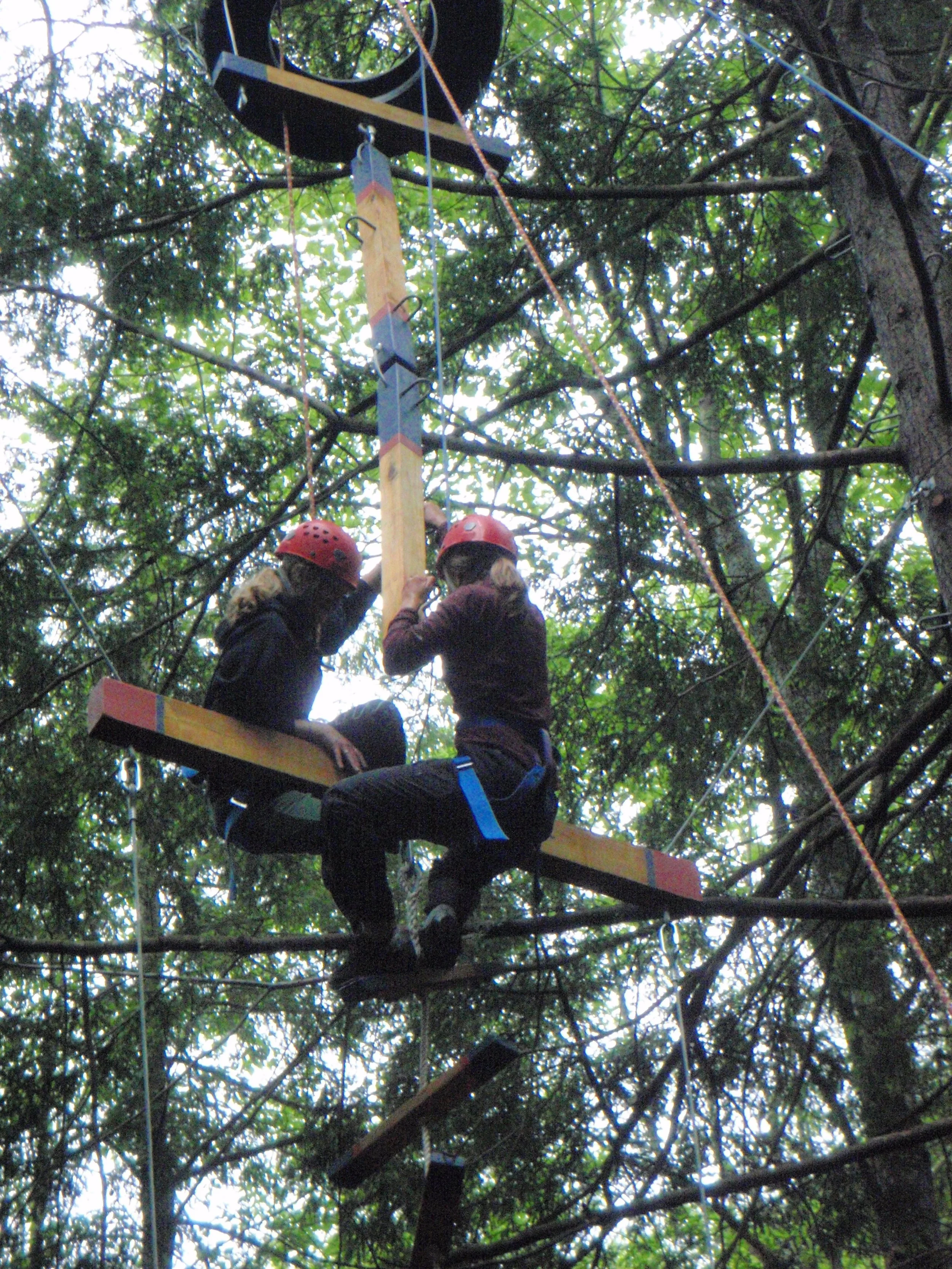 This is a giant step up from your average playground jungle gym! Climb up a series of brightly painted 4x4s, staples, tires, and a two-person firecracker ladder as you give and receive help with a partner.