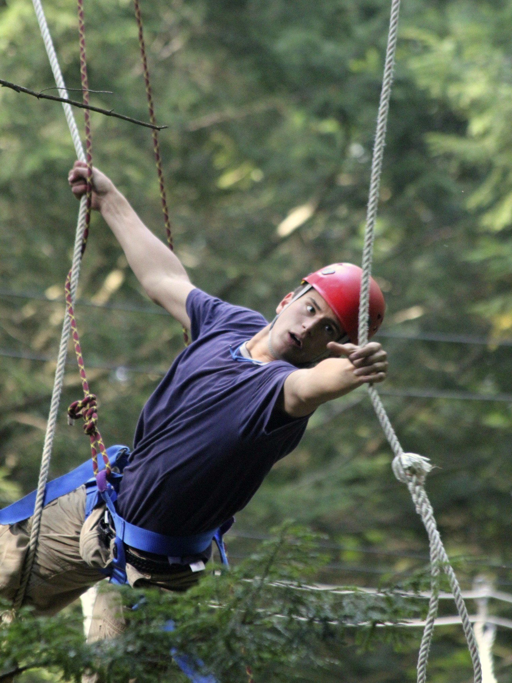 This element is a test of pure athleticism. It consists of a series of hanging ropes with foot loops—your goal is to traverse the entire row and get to the opposite tree. To succeed, you must use every ounce of strength and coordination that you possess.