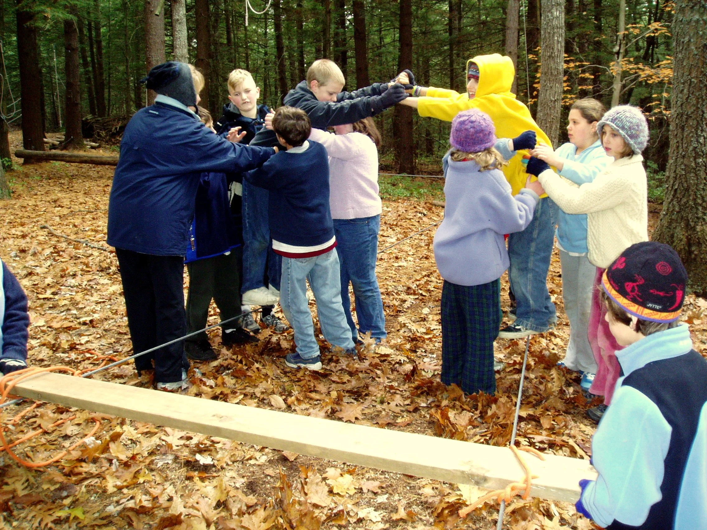 It’s not about how tall you are—it’s about how well you communicate and trust your partner, your spotters, and yourself. This element is made up of two cables that start at the same point but diverge as they get farther apart: the goal is for each pair to travel as far as they can along the cables. The rest of the group is actively involved as spotters, creating an environment of comfort that allows the participants to reach their potential.